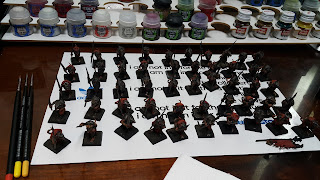 Malowanie hordy małymi kroczkami zbliża się do końca. Po zalaniu ich Agraxem, udało mi się pomalować wszystkie szmatki, czy przepaski.. Wolno to idzie bo jak zapewne pamiętacie jest ich 50.. Efekt możecie zobaczyć na drugim zdjęciu.. Teraz zabieram się za kolejny etap, rozjaśnianie skóry..